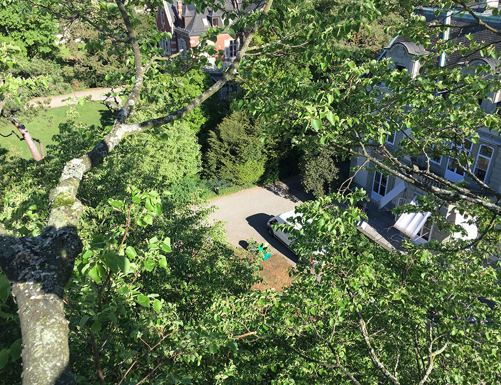 Nach Laubaustrieb pflegten wir eine grosse Winterlinde im Gellertquartier in Basel. Die Linde war stark von Misteln befallen und sehr ausladend gewachsen. Eine schöne Arbeit mit tollem Team, danke an Marco und die Bodencrew vom Club Gartenunterhalt.