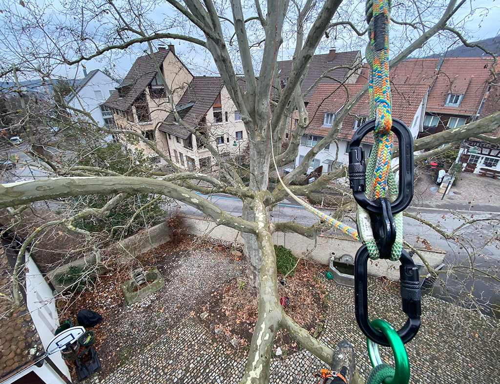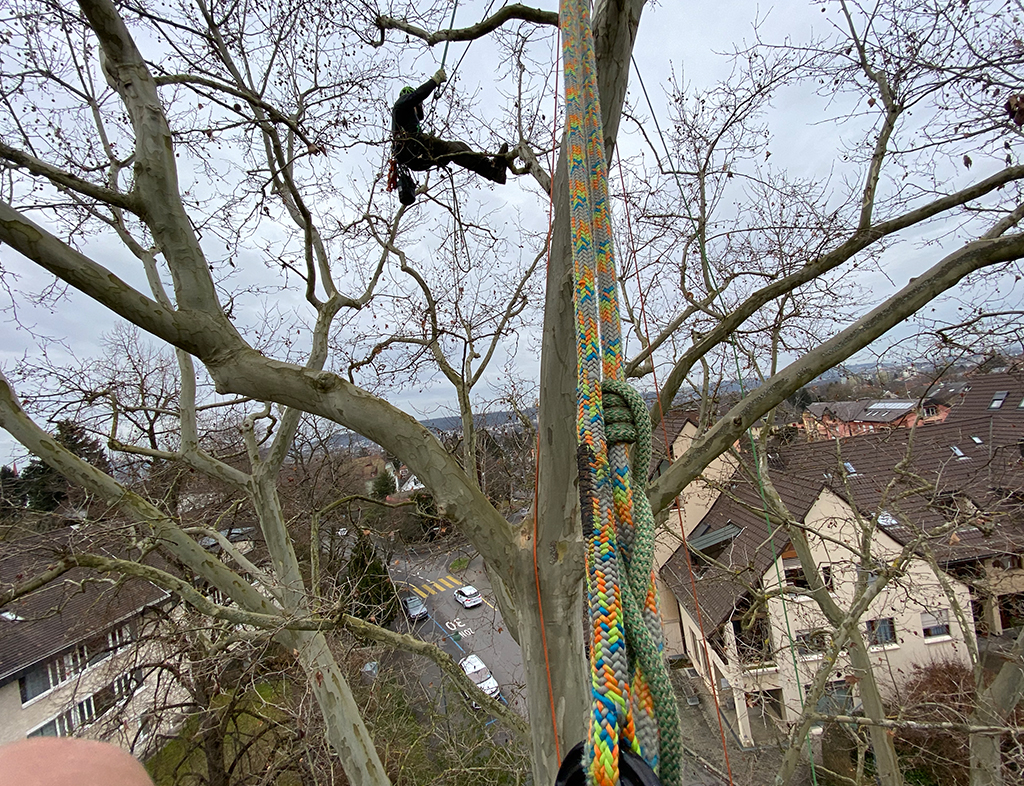 Wir führten die jährliche Massariakontrolle auf einer grossen Platane in Arlesheim durch. Massaria ist eine Pilzkrankheit, die ältere Platanen befallen kann.