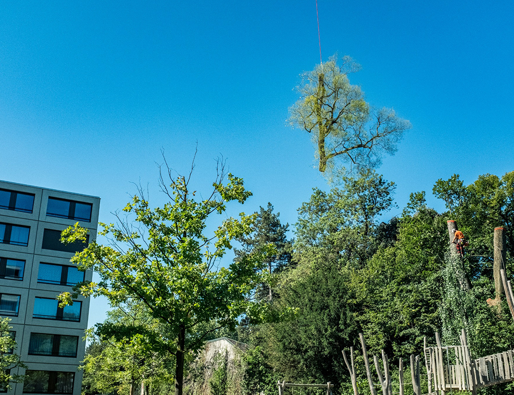 Spezialfällarbeiten eines kranken japanischen Schnurbaums. In Zusammenarbeit mit der Firma Heliswiss, Matthias Roth, Manuel Müller, Heinrich Roth, Manuel Bachmann und Christen Transport fällten wir mittels Helikoptereinsatz die marode Sophora japonica. Besten Dank an alle Beteiligten für den tollen Einsatz.